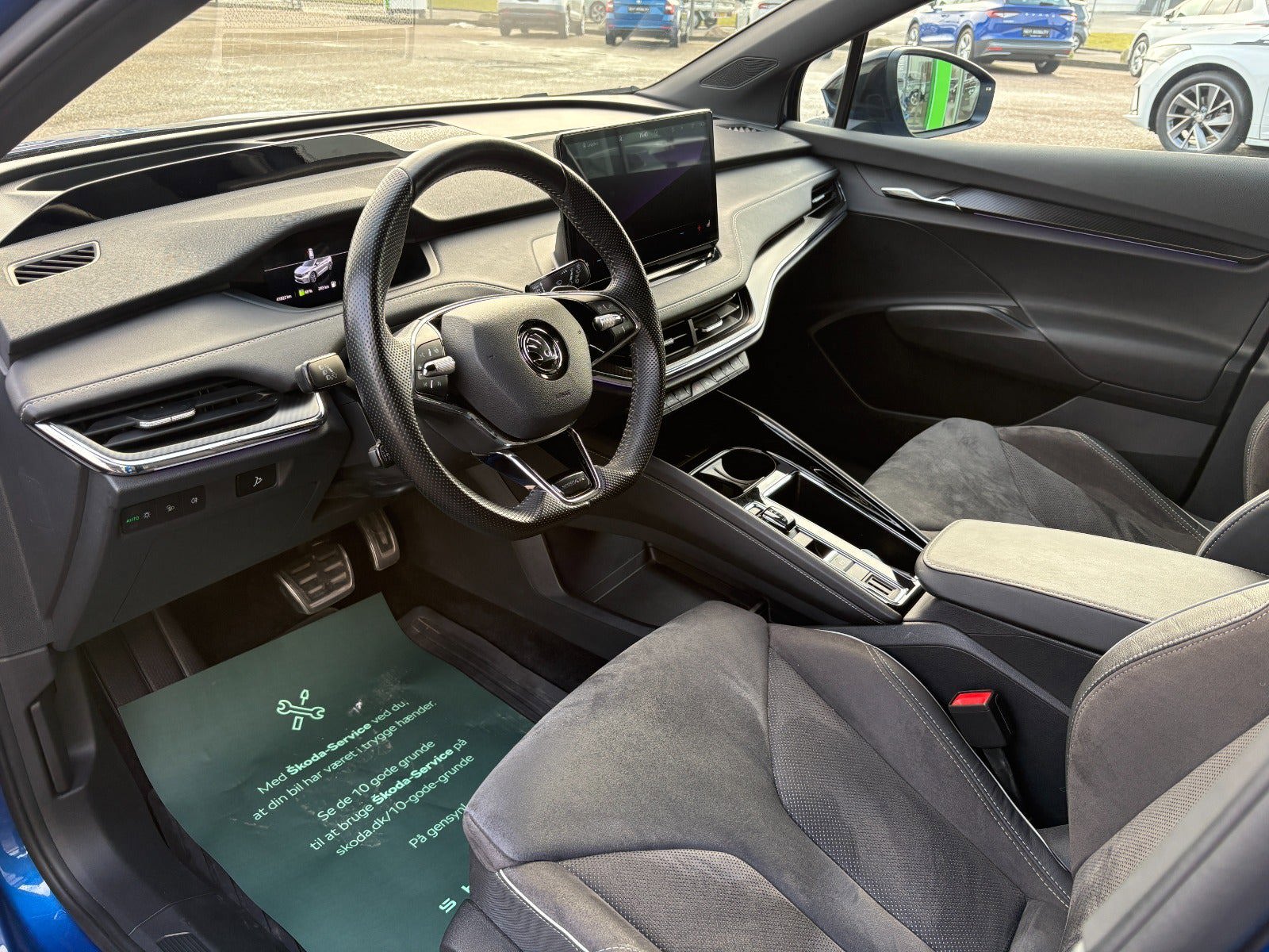 Øvrigt udstyr digitalt cockpit, multifunktions sports-læderrat med paddles til rekuperering, el-førersæde med justerbar lændestøtte, ambientebelysning (indvendig + udvendig med oplyste styling-elementer), el-klapbare sidespejle med varme, memory og automatisk nedblænding (førersiden), mørktonede ruder bag (Sunset), tagræling blank sort, trådløs opladning, Phone Box med LTE, Apple CarPlay, Android Auto, Bluetooth musikstreaming, USB-C (2 foran + 2 bag), bakkamera, parkeringssensor for og bag, blindvinkelsassistent, vognbaneassistent, skiltegenkendelse, regnsensor, automatisk lys, fjernlysassistent, forlygtevaskere, alarm, dæktryksmåler, Isofix, dynamisk styring, sportaffjedring for og bag, 230V stik i bagagerum, nøglefri adgang og start (KESSY), DAB-radio m.m. Pæn og meget veludstyret Enyaq Sportline i flot Race Blue Metallic – klar til besigtigelse og prøvetur. |
