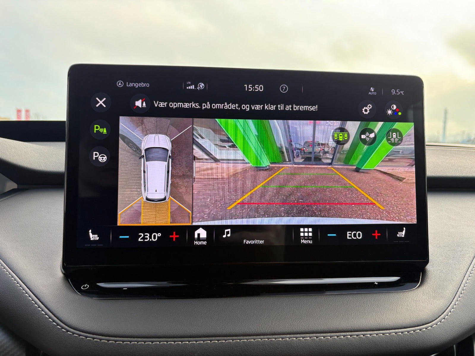 digitalt cockpit, multifunktions sports-læderrat med paddles til rekuperering, mikrofiber/læderindtræk (Sportline), sportskomfortsæder foran, ambientebelysning (indvendig + udvendig med oplyste styling-elementer), el-klapbare sidespejle med varme, memory og automatisk nedblænding (førersiden), mørktonede ruder bag (Sunset), tagræling blank sort, trådløs opladning, Phone Box med LTE, Apple CarPlay, Android Auto, Bluetooth musikstreaming, USB-C (2 foran + 2 bag), 360° Area View + intelligent parkeringssystem, bakkamera + parkeringssensor for og bag, blindvinkelsassistent, vognbaneassistent, skiltegenkendelse, regnsensor, automatisk lys, fjernlysassistent, forlygtevaskere, alarm, dæktryksmåler, Isofix, dynamisk styring, 230V stik i bagagerum, nøglefri adgang og start (KESSY), DAB-radio m.m.